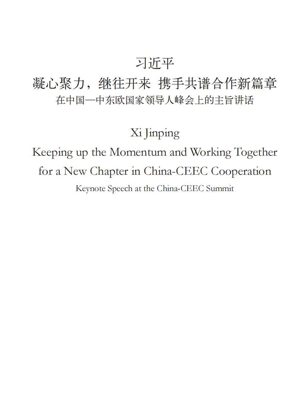 ——在中国—中东欧国家领导人峰会上的主旨讲话
