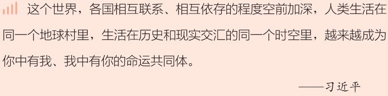 科学技术日新月异,信息技术缩短了人与人之间的距离,各国之间的经济合作日益紧密,国家间文化交流活动日益丰富,不同国家间人员的流动越来越便利……世界越来越成为一个相互联系、相互依赖的人类共同家园。