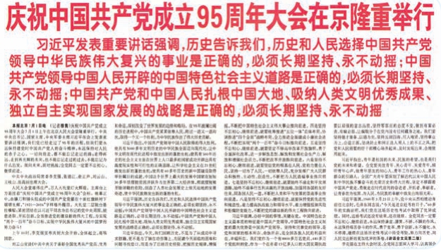 2016年7月1日,习近平总书记在庆祝中国共产党成立95周年大会上指出,全党要坚定道路自信、理论自信、制度自信、文化自信
