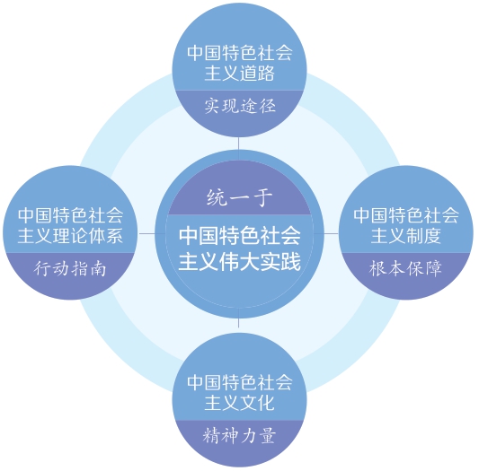改革开放以来,我们取得一切成绩和进步的根本原因,归结起来就是:开辟了中国特色社会主义道路,形成了中国特色社会主义理论体系,确立了中国特色社会主义制度,发展了中国特色社会主义文化。四者统一于中国特色社会主义伟大实践。在当代中国,坚持和发展中国特色社会主义,是唯一正确的道路选择。