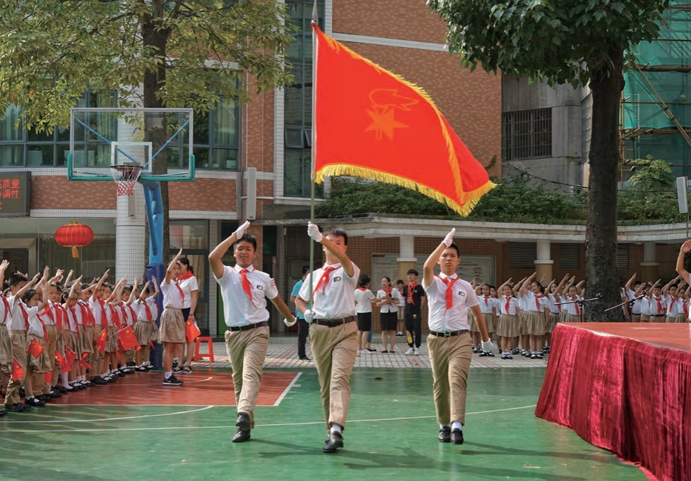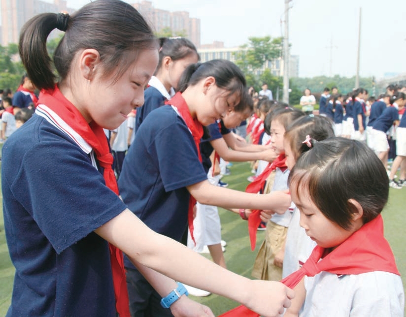 少先队在党的领导下茁壮成长。每一名少先队员都要听党话、跟党走,让胸前的红领巾更加鲜艳。