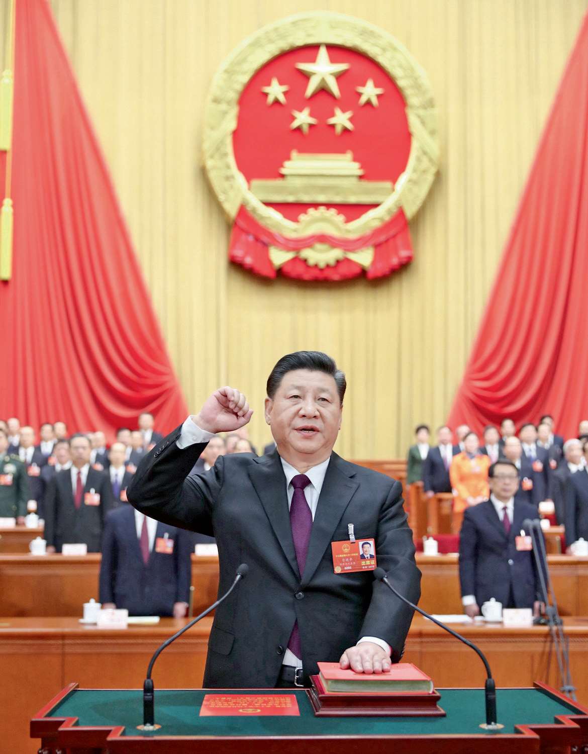 2018年3月17日,十三届全国人大一次会议宪法宣誓仪式举行。新当选的国家主席、中央军委主席习近平进行宪法宣誓。
