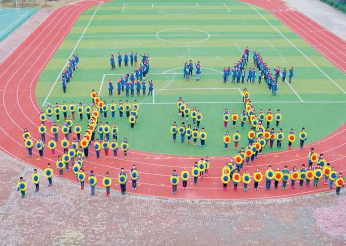 小学生在操场组成“12·4宪法”字样,喜迎“国家宪法日”