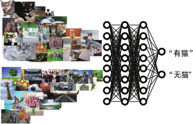 图1-1 经过训练,人工神经网络能够判定输入的图片上“有猫”还是“无猫”