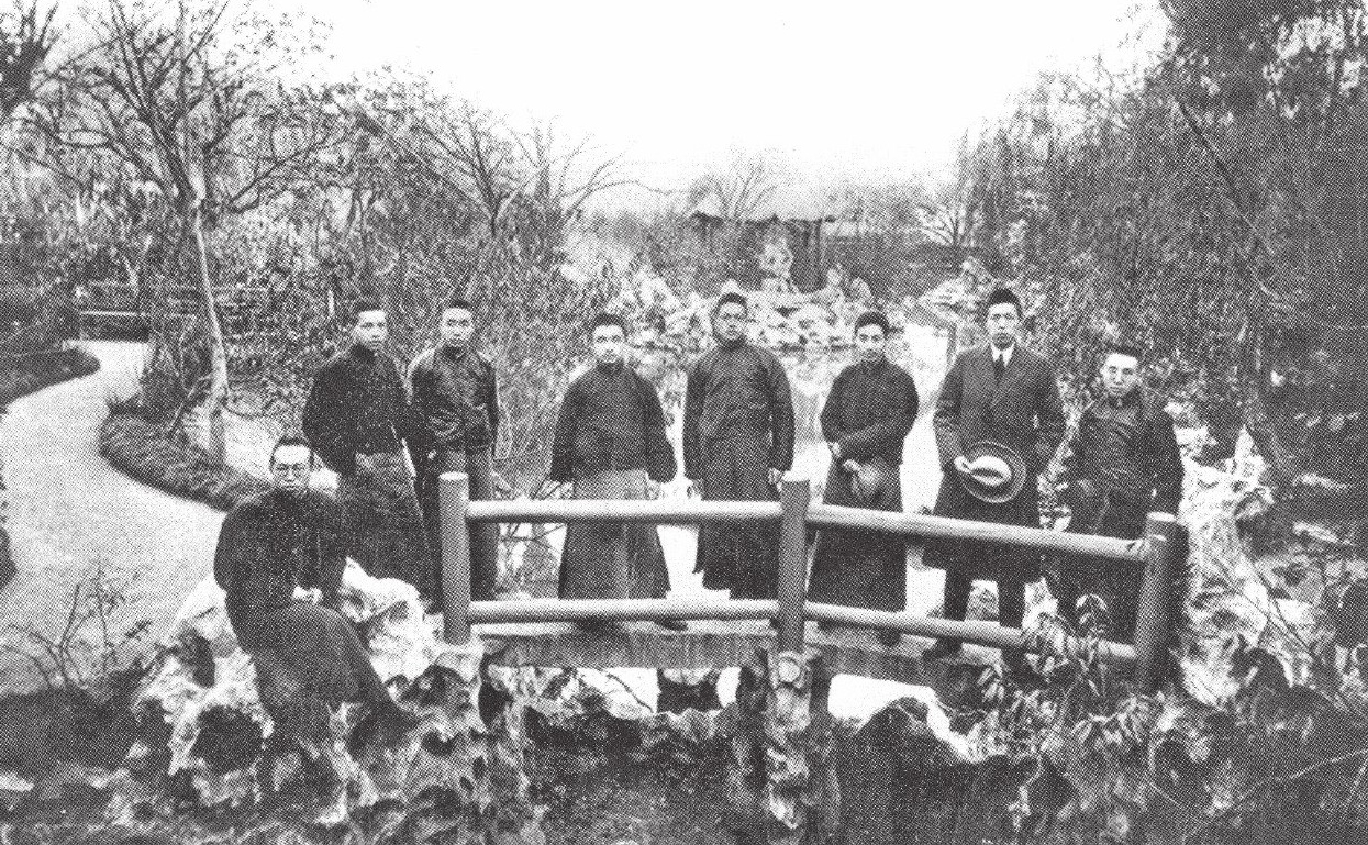 在上海半淞园与中国公学中学部友人合影(右三为叶圣陶)