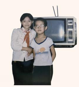 微漪和表弟以及家里的第一台电视机