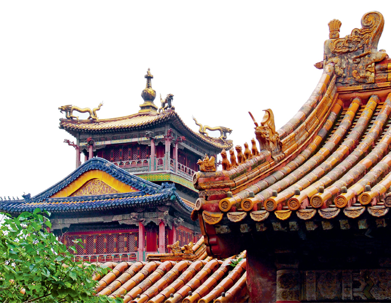 清宫建筑之所予人印象最深处,在其一贯之雄伟气魄,在其毫不畏惧之单调。其建筑一律以黄瓦、红墙碧绘为标准样式(仅有极少数用绿瓦者),其更重要庄严者,则衬以白玉阶陛。在紫禁城中万数千间,凡目之所及,莫不如是,整齐严肃,气象雄伟,为世上任何一组建筑所不及。