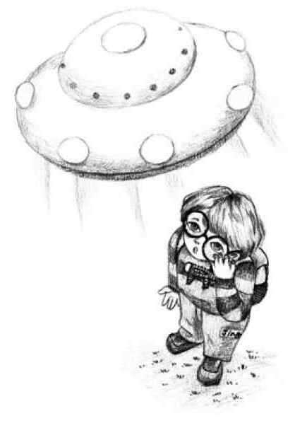 令人想象不到的事情发生了,那颗星星突然动了起来,它拖着一条尾巴划过大半个天空,眨眼间来到麦可的头顶上方。一阵风把麦可的头发吹乱,他愕然地仰起头,不由得咧了咧嘴:是一个巨大的飞行器悬浮在上空,闪着七彩绚烂的光芒!