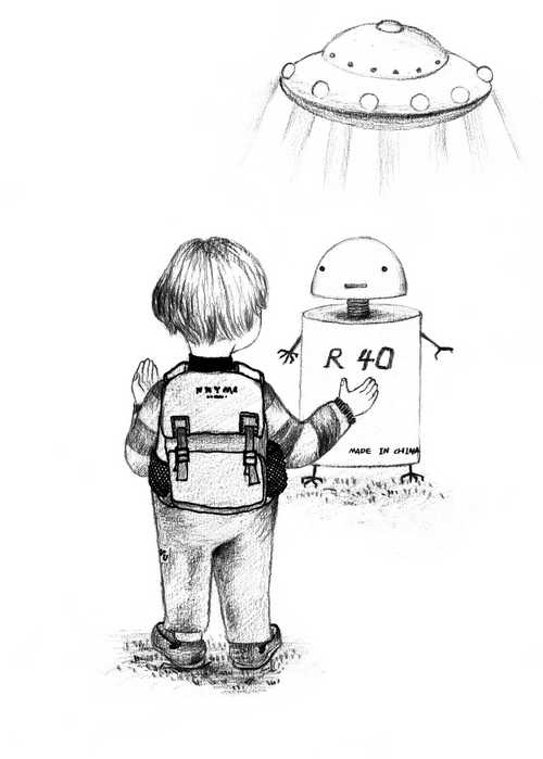 那个机器人伸出他那条比筷子粗不了多少的短胳膊给麦可看,上面标记着“MADE IN CHINA”,说:“看到没有?中国制造,R40型第二代个性化机器人,关键技术属于拯救天才协会,我还给自己起了一个非常酷的名字,叫作雷克。”