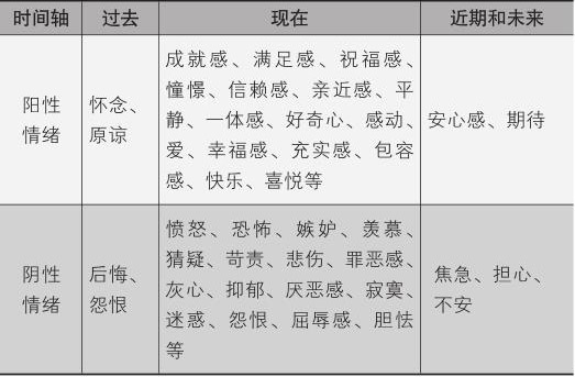 表1-2 从时间轴看阳性情绪与阴性情绪