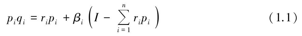 其中, p i , q i 分别表示第 i 种物品的价格和需求,包括基本和非基本需求, r i 表示第 i 种物品的基本需求量, I 表示收入, β i 表示第 i 种物品在消费支出中所占的比重。用 PL 表示以货币形式表示的最低收入保障,则贫困线为