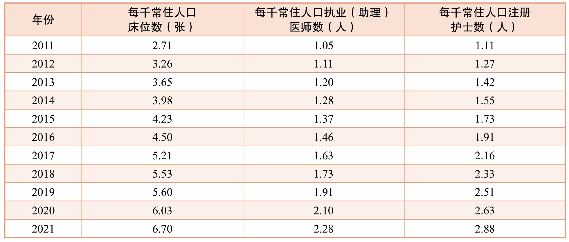 表1-6 2011—2021年赣州市医疗服务水平变化情况