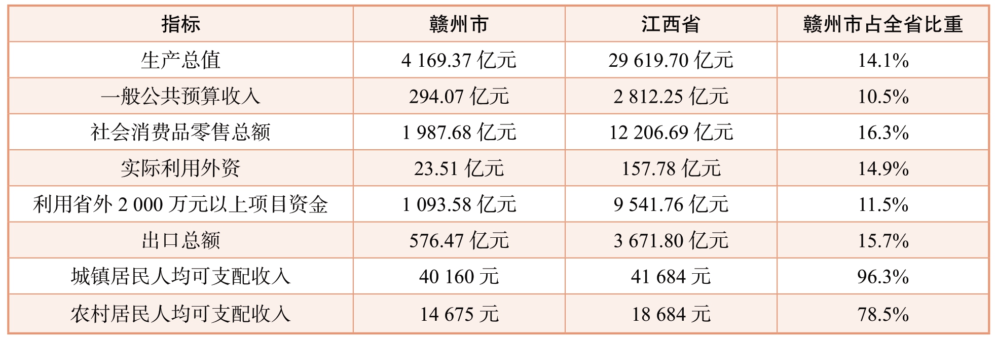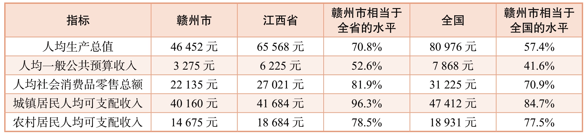 资料来源:根据江西省、赣州市《2021年国民经济和社会发展统计公报》整理得到。