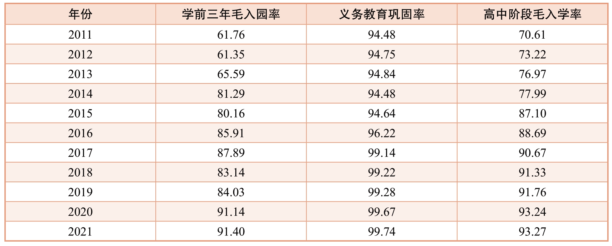 表1-5 2011—2021年赣州市教育发展水平变化情况 单位:%