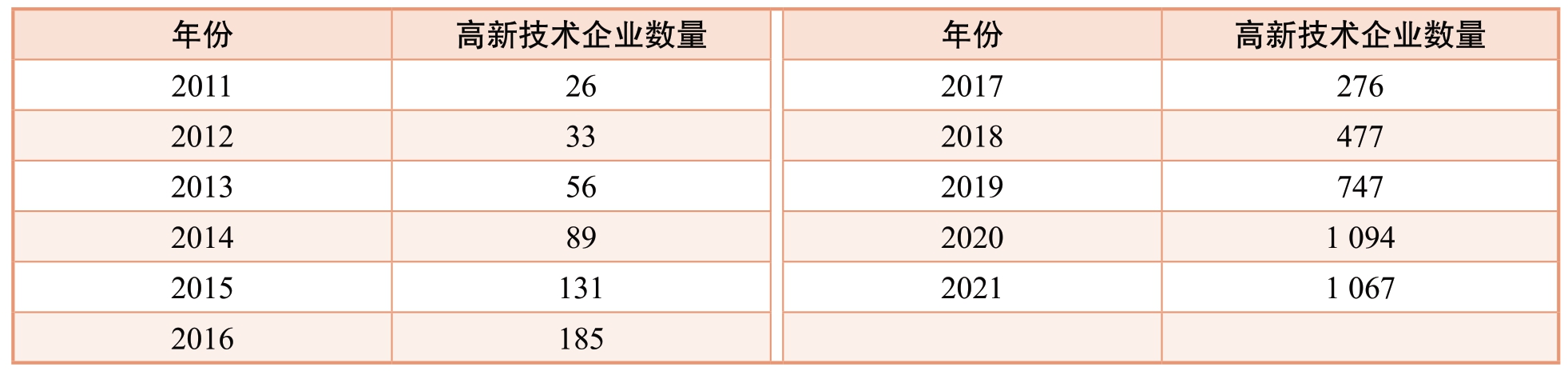 表1-8 2011—2021年赣州市高新技术企业数量变化情况 单位:家