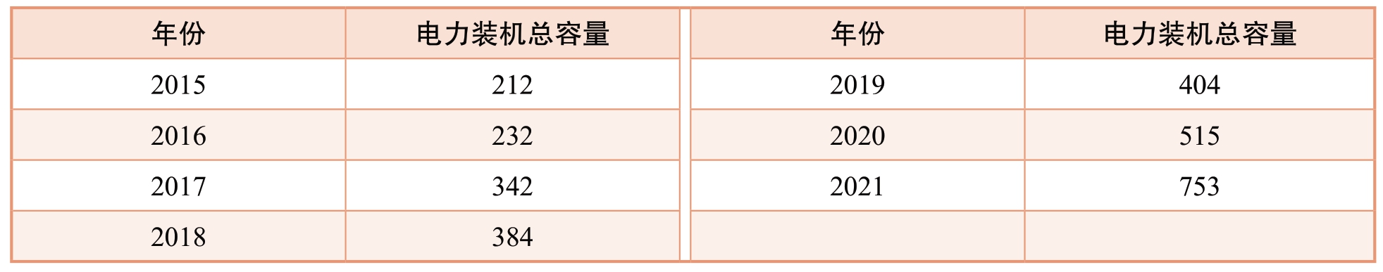 表1-11 2015—2021年赣州市电力装机总容量 单位:万千瓦