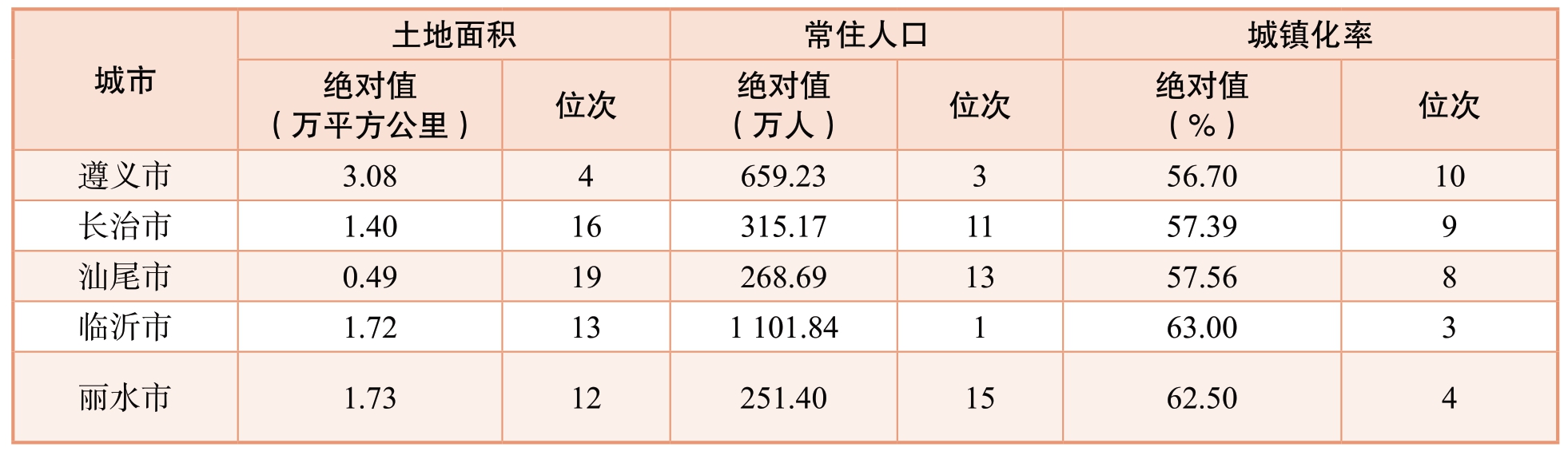 (5)生态环境质量优势。赣州市森林覆盖率稳定在76.23%以上,拥有国家级自然保护区3处、国家级湿地公园13处,获批“国家森林城市”,成为全国首批“创建生态文明典范城市”和“国家山水林田湖草生态保护和修复试点市”。相比其他革命老区城市大多位于陕北黄土丘陵沟壑区或者中部、南方生态环境脆弱地区,赣州市自然条件较好成为其加快发展的主要优势。