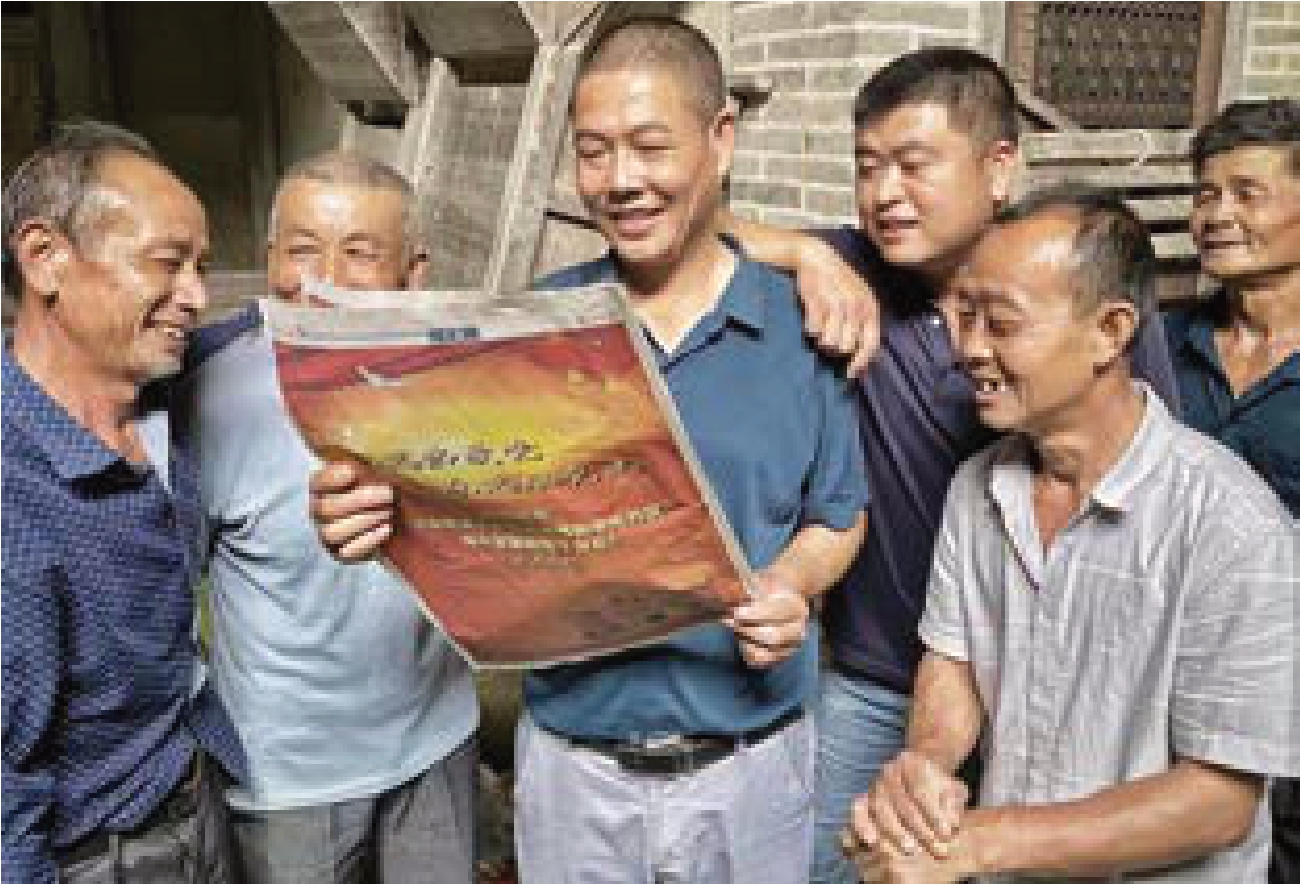 赣州市章贡区沙石镇龙岗村干部和村民正在观看《赣南日报》,为《国务院关于支持赣南等原中央苏区振兴发展的若干意见》正式出台感到欢欣鼓舞