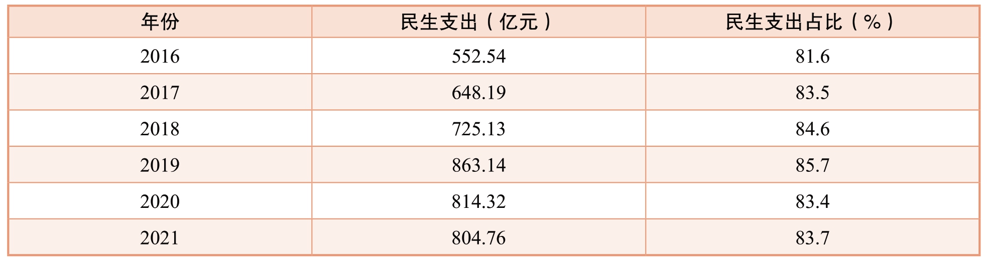 表1-4 2012—2021年赣州市民生类支出及其所占比重