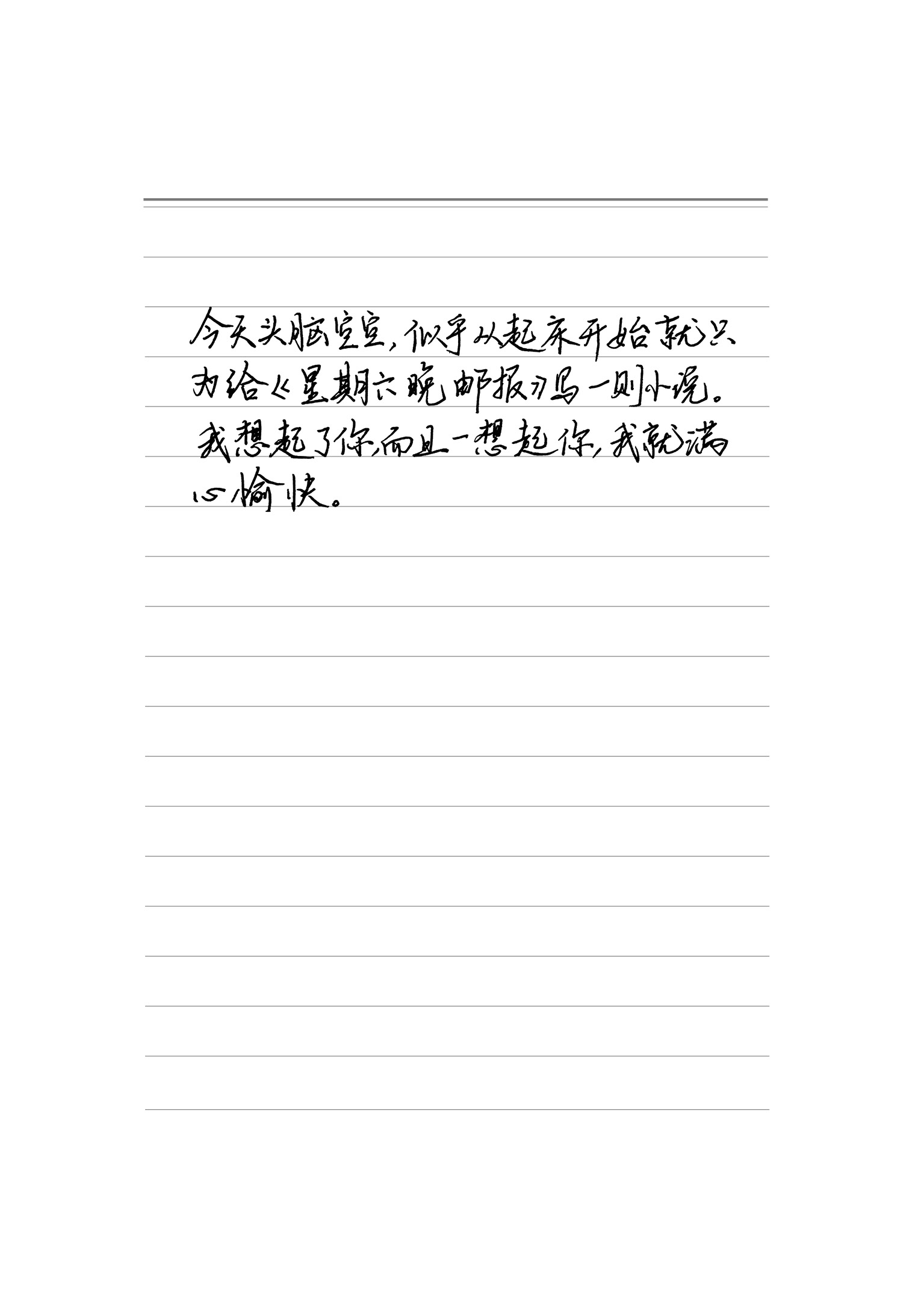 今天头脑空空,似乎从起床开始就只为给《星期六晚邮报》写一则小说。我想起了你,而且一想起你,我就满心愉快。不过你要是再唤我“爸比”,我就会拿出“白猫”,用力打他的屁股,你每无礼一次,我就打他六下。你觉得如何?