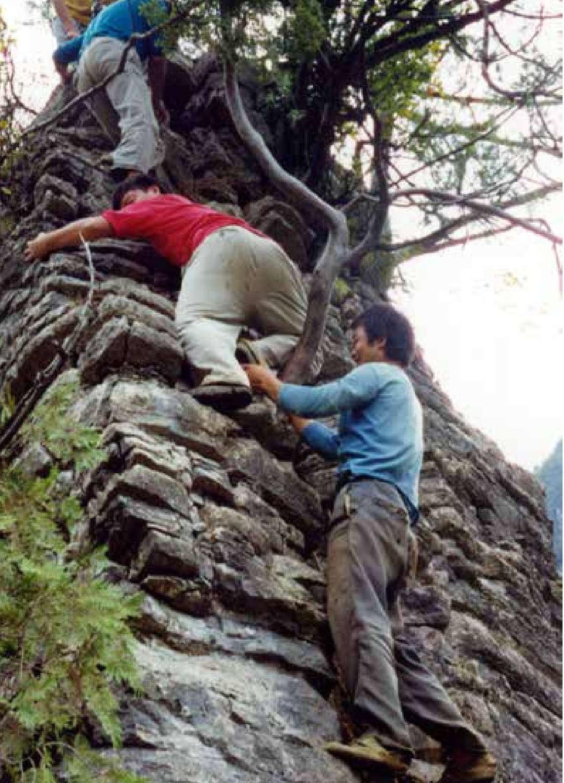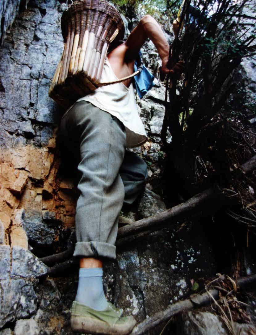 通往外界的唯一一条“路”是绝壁上的108道“之字拐”。村民们想要出村,只能鼻子贴着崖壁,手脚并用,后脚腾空,抓紧树藤,一点一点地挪。全村有150多人一辈子没出过村,160多人没见过公路。