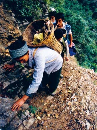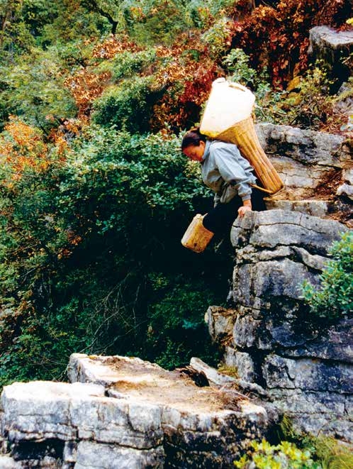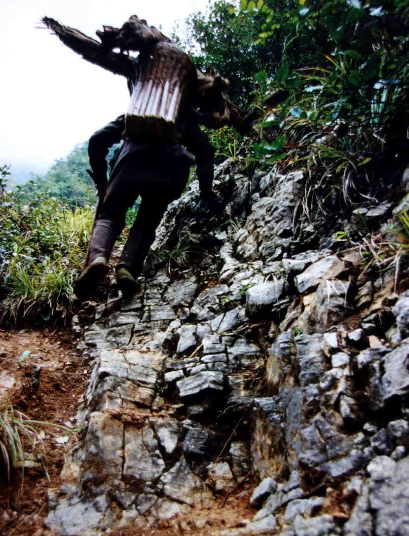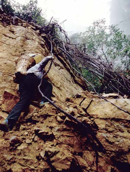 为了生计,村民们不得不在险恶的山路上攀爬通行。