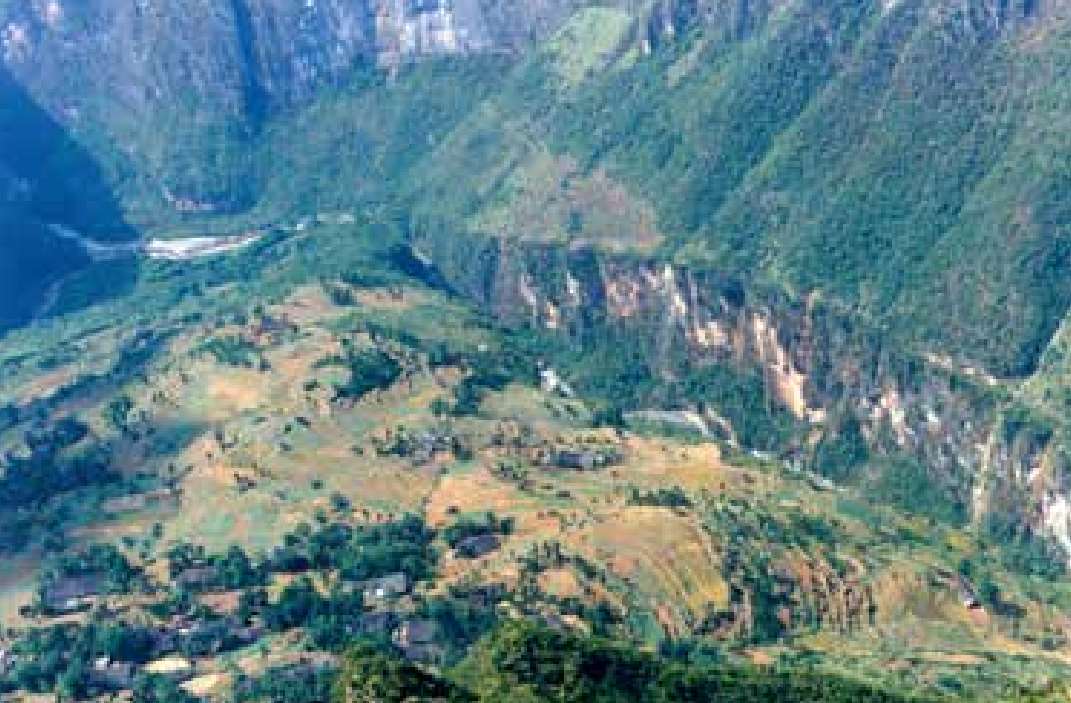 下庄村四周高山合围,犹如“天井”,从“井口”到“井底”,垂直高度1100多米,“井底”直径1.3公里,“井口”直径不到10公里。