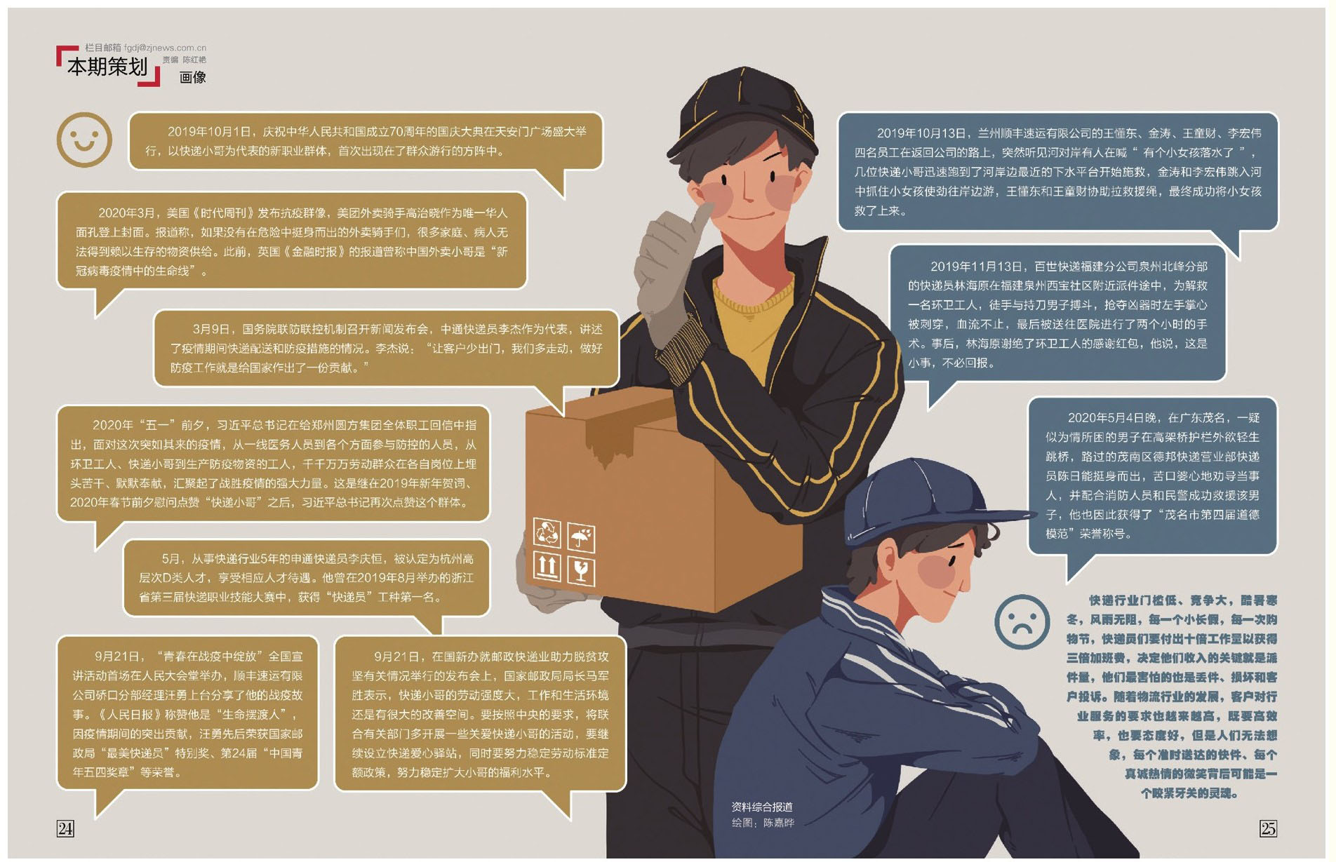 被习近平总书记称为美好生活的创造者、守护者的“快递小哥”,在今年新冠肺炎疫情期间勇敢逆行,为保障防疫物资运输寄递、促进生产流通和居民消费作出了重大贡献。