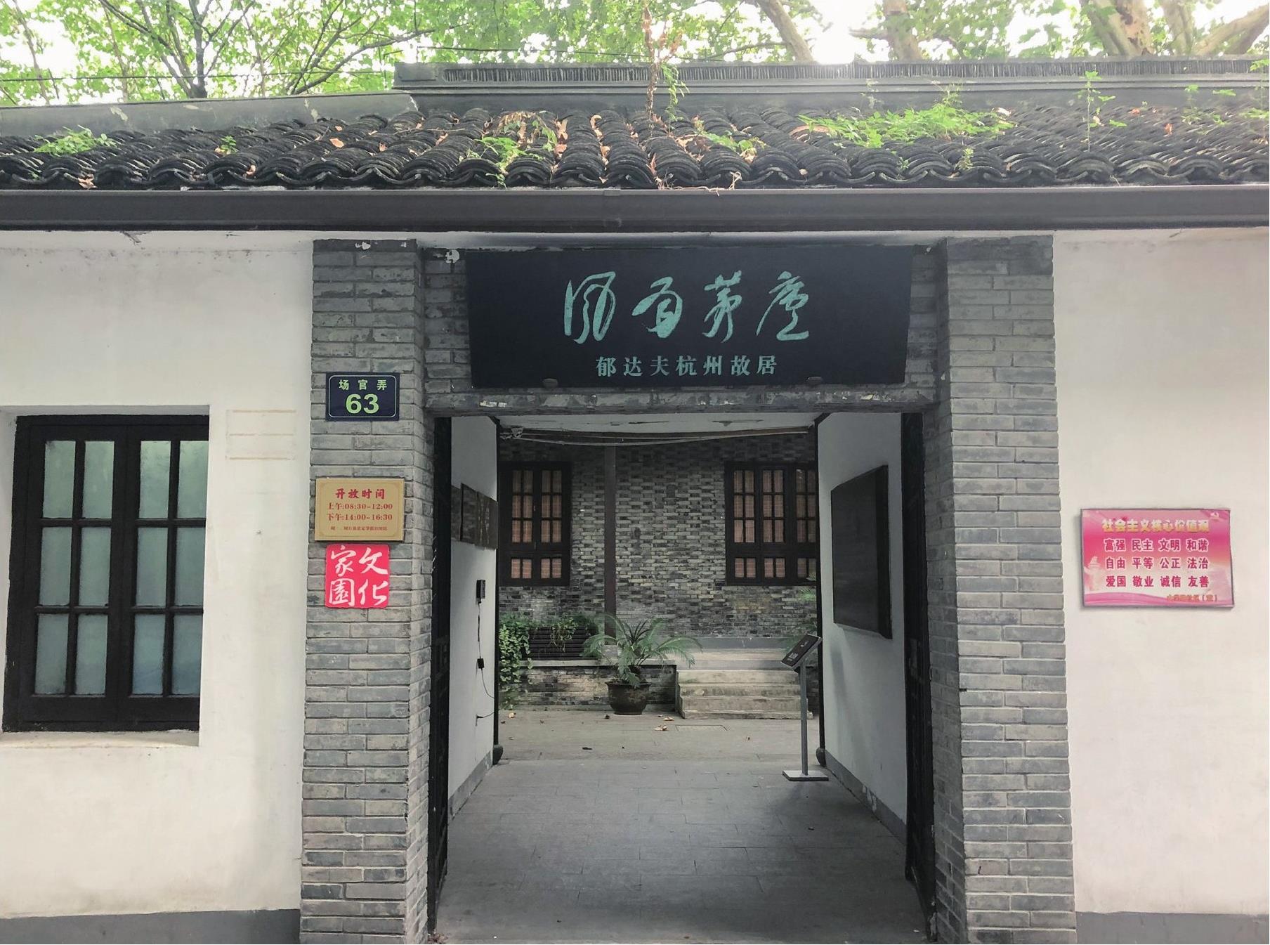 郁达夫故居“风雨茅庐”位于杭州市大学路场馆弄63号。1933年,郁达夫回到杭州后购得地皮亲自设计。“风雨茅庐”是一座典型的中式平房别墅。整体布局分正屋和后院。其中三间正屋,坐北朝南,后院为书房和客房,四周林木参差,环境幽雅。