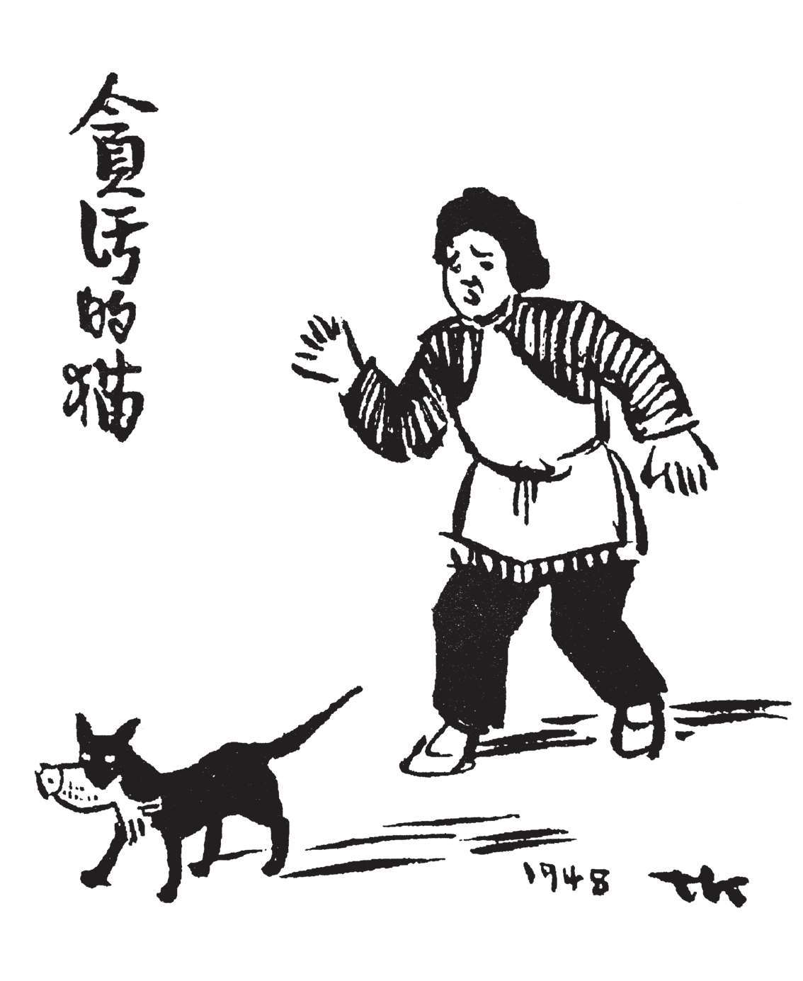 今天,我忽发心,要彻底查究猫的贪污,以根绝后患。我想,猫的贪污,定是由于没有吃饱之故。倘把只只猫喂饱,它们食欲满足,就各自去睡觉,洗脸,捉尾巴,厮打,或互相舐面孔,不致作恶为非了。于是我叫大司务来,问他“每日喂几顿?每顿多少分量?”大司务说:“每日规定三顿,每顿规定一千元猫鱼,拌一大碗饭。”我说:“猫有五只,这一点点怎么吃得饱呢?”大司务说:“它们倾轧得厉害。有时大猫把小猫挤开,先拣鱼来吃光,然后让小猫吃。有时小猫先落手为强,轮到大猫就没得吃。吃是的确吃不饱的。”我说:“为什么不多买点猫鱼,多拌点饭呢?”大司务说:“……”过了一会,又说:“太太规定如此的。”我说:“你去。”就去找太太,讨论猫的待遇问题。我说:“这许多猫,怎么每天只给一千元猫鱼呢?待遇这样薄,难怪它们要贪污了!”太太满不在乎地回答:“并没有薄,一向如此呀!”我说:“物价涨了呀!从前一千元猫鱼很多,现在一千元猫鱼只有一点点了!你这办法,正是教唆诸猫贪污!你想,它们吃不饱,只有东钻西钻,偷偷摸摸,狼狈为奸,集团贪污。照过去估计,猫的贪污,使我们损失很大!你贪小失大,不是办法。依我之见,不如从今大加调整。以物价指数为比例:米三十万元的时候每天给一千元猫鱼,如今米九十万了,应给三千元猫鱼。这样,它们只只吃饱,贪污事件自然减少起来。”太太起初不肯。后来我提及了三友实业社的三十万元的床毯被猫集团贪污而弄脏的事件,太太肉痛起来,就答允调整。立刻下手令给大司务,从明天起每日买三千元猫鱼。料想今后,我家猫的贪污案件,一定可以减少了。