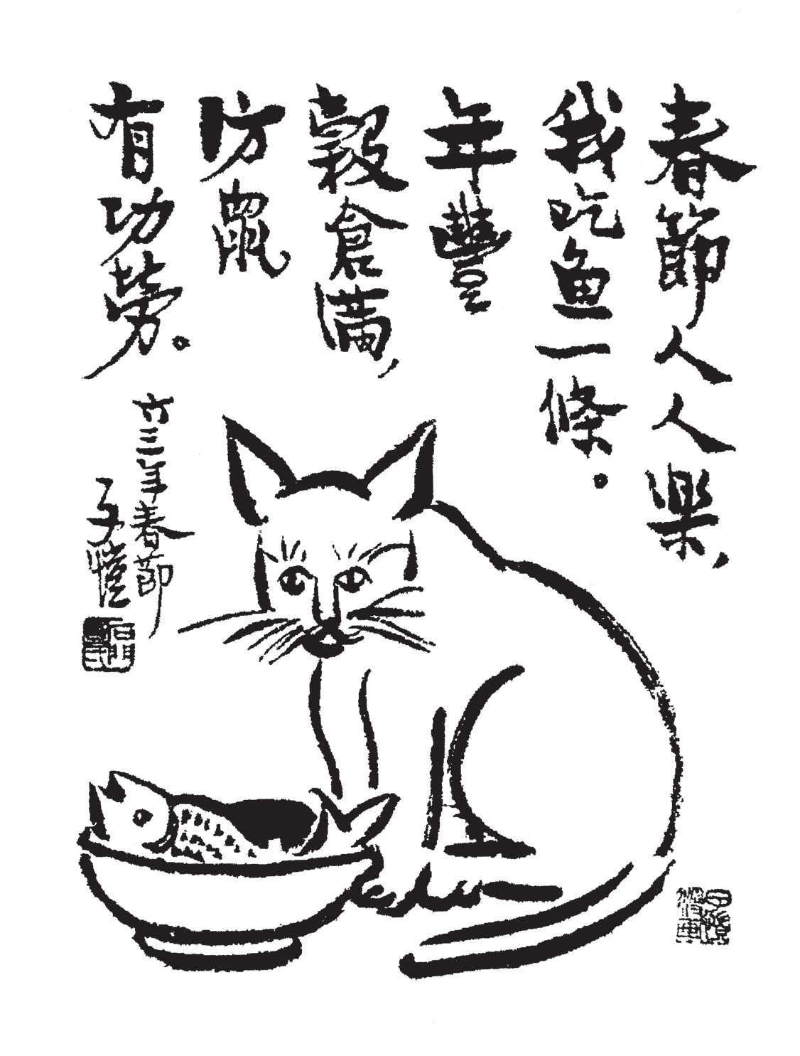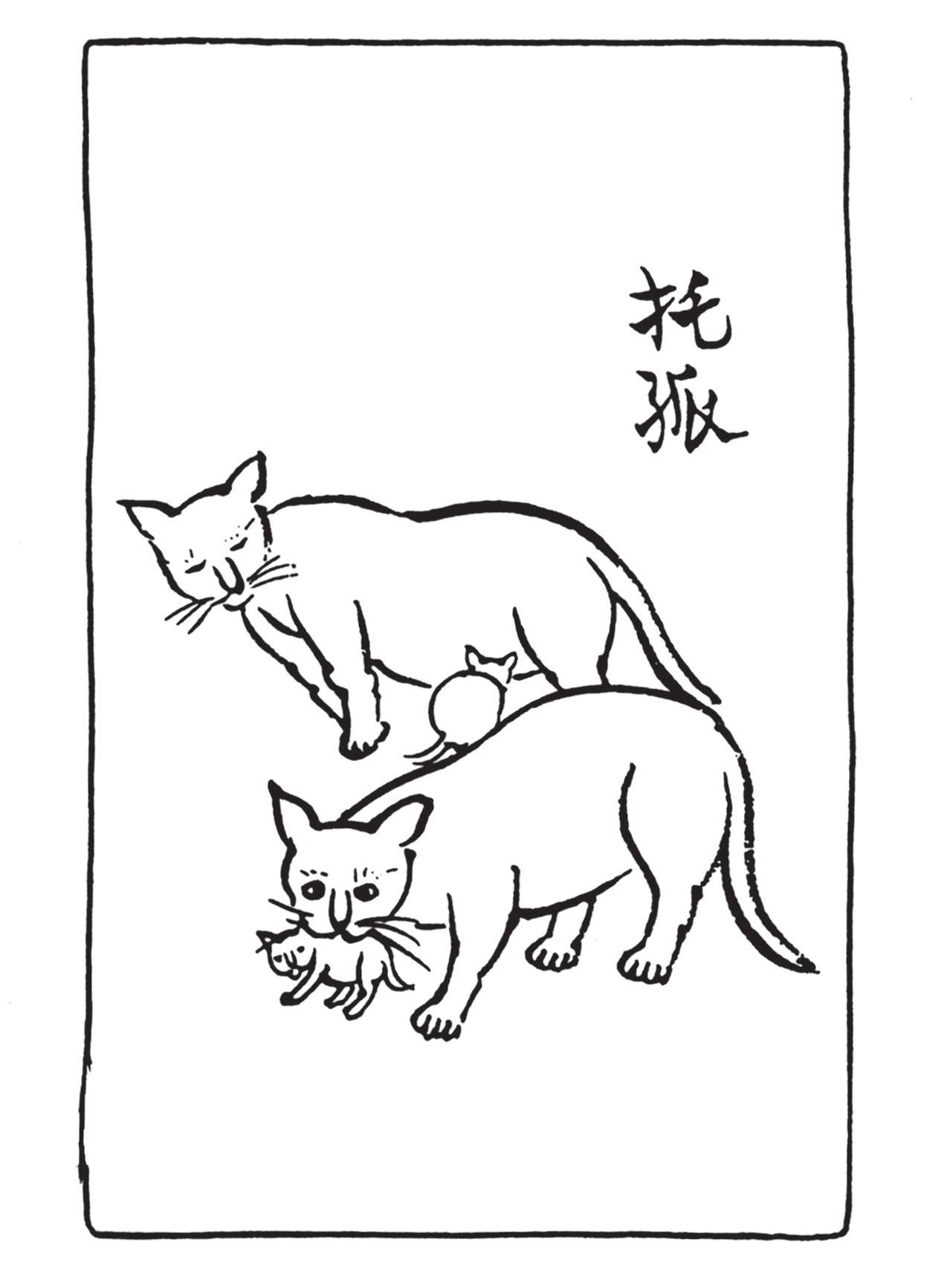 可知猫是男女老幼一切人民大家喜爱的动物。猫的可爱,可说是群众意见。而实际上,如上所述,猫的确能化岑寂为热闹,变枯燥为生趣,转懊恼为欢笑;能助人亲善,教人团结。即使不捕老鼠,也有功于人生。那么我今为猫写照,恐是未可厚非之事吧?猫伯伯行年四岁,短命而死。这阿咪青春尚只有三个月。希望它长寿健康,像我老家的老猫一样,活到十八岁。这老猫是我的父亲的爱物。父亲晚酌时,它总是端坐在酒壶边。父亲常常摘些豆腐干喂它。六十年前之事,今犹历历在目呢。