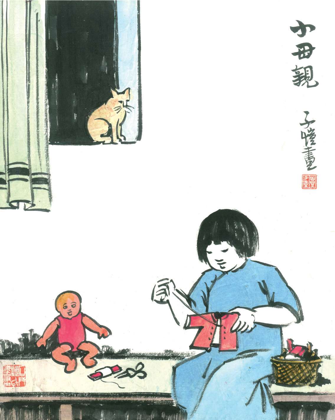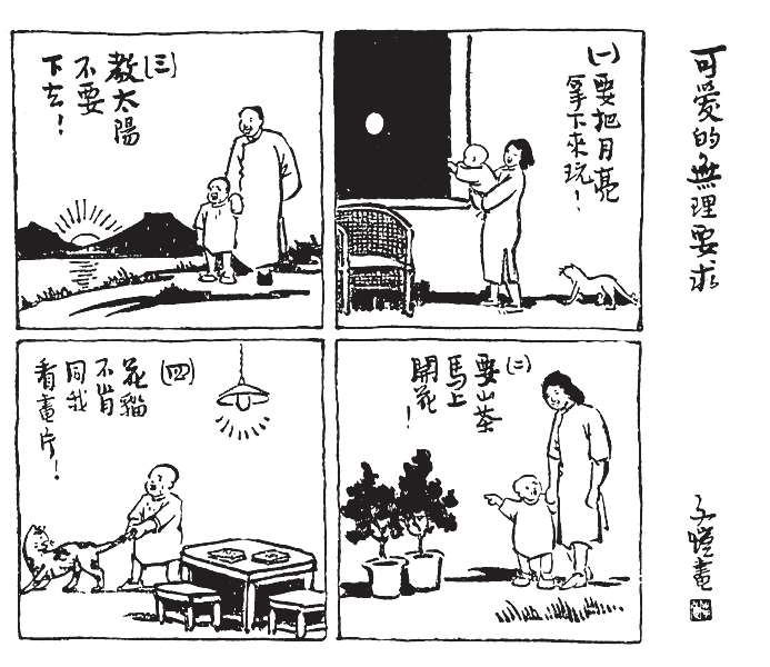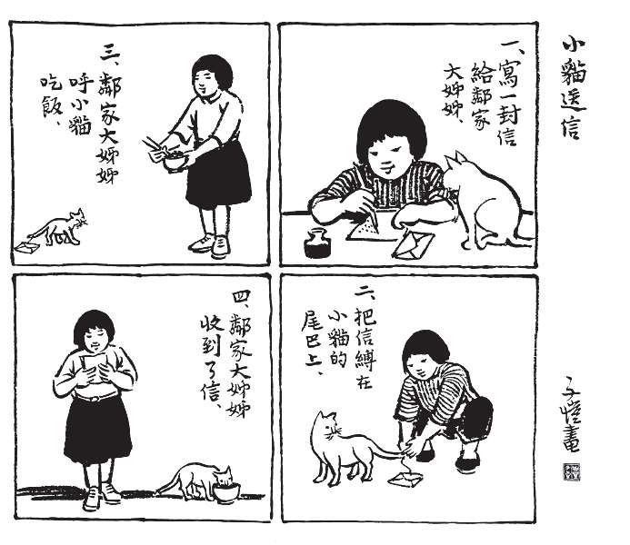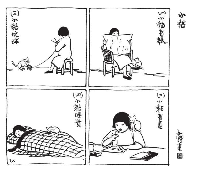 我家平日只有四个大人和半个小孩。半个小孩者,便是我女儿的干女儿,住在隔壁,每星期三天宿在家里,四天宿在这里,但白天总是上学。因此,我家白昼往往岑寂,写作的埋头写作,做家务的专心家务,肃静无声,有时竟像修道院。自从来了阿咪,家中忽然热闹了。厨房里常有保姆的话声或骂声,其对象便是阿咪。室中常有陌生的笑谈声,是送信人或邮递员在欣赏阿咪。来客之中,送信人及邮递员最是枯燥,往往交了信件就走,绝少开口谈话。自从家里有了阿咪,这些客人亲昵得多了。常常因猫而问长问短,有说有笑,送出了信件还是留连不忍遽去。