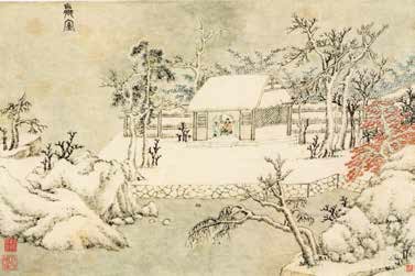 画中有一片前庭。它已经被白雪覆盖,一片晶莹“如月辉”了。
