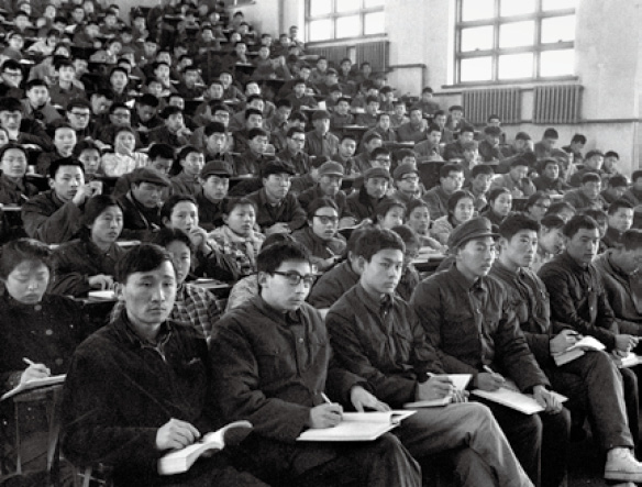 1978年3月,清华大学77级新生坐在阶梯教室里上课。