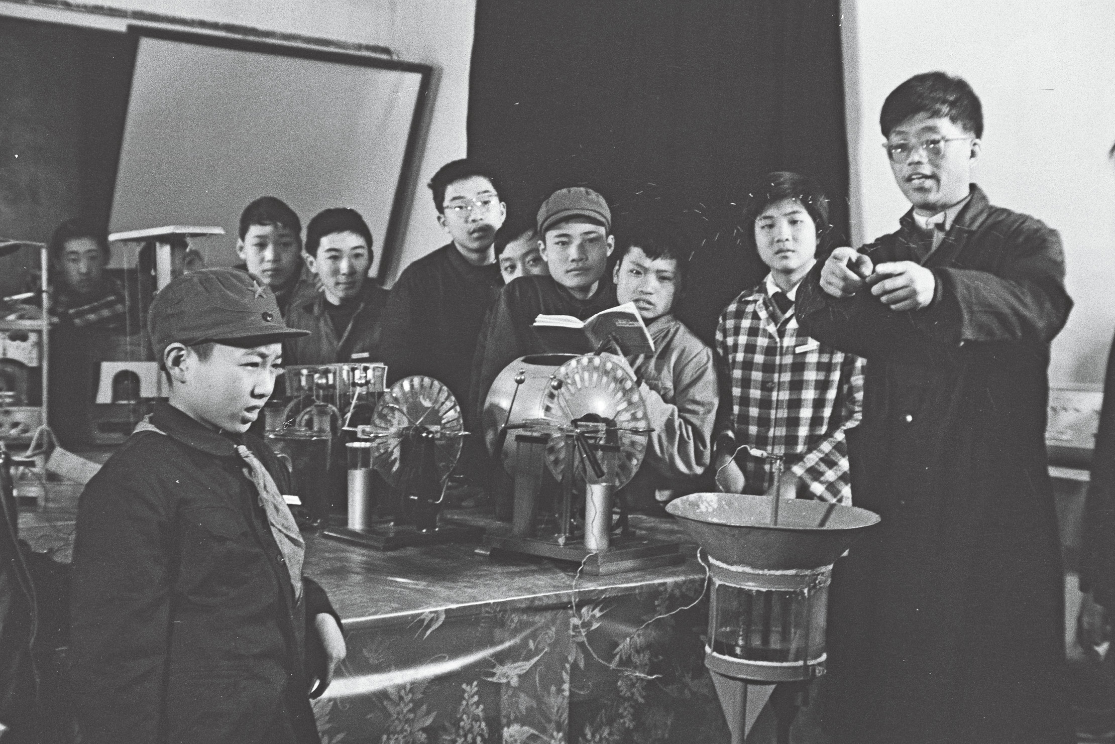 1977年,中国科技大学成立少年班,招收了21名少年大学生。这是少年班的学生在上物理实验课。