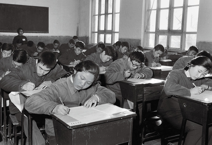 1977年冬天,参加高等学校入学考试的青年正在认真答卷。这次考试规模之大,在当时不仅创造了中国教育史上的最高纪录,亦堪称世界之最。
