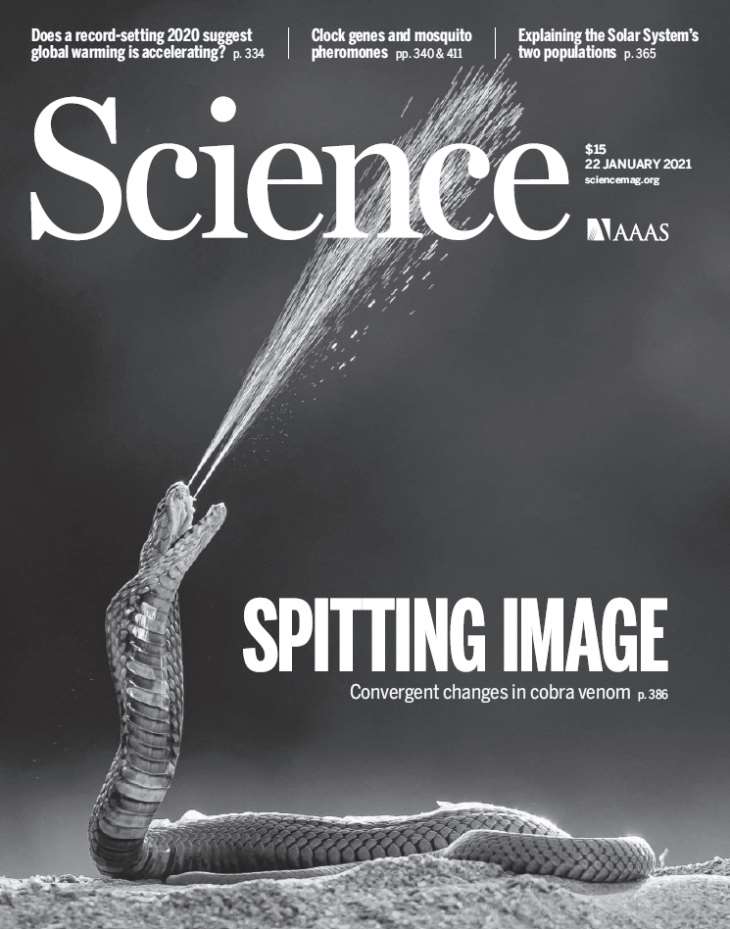 图 1-3 眼镜蛇喷毒液的精彩瞬间( Science 封面)