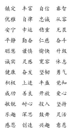 以下是一个主题词清单。这些主题词都富有正念能量,可以帮助自己保持专注,并在个人成长、生活和事业上取得进步。