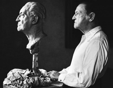 晚年的毛姆在自己的塑像前