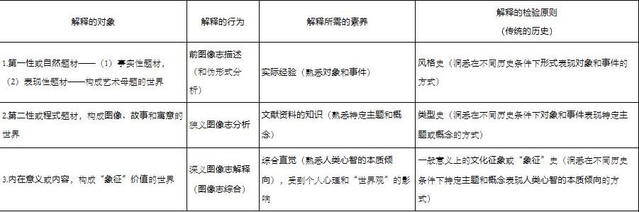 将这种分析的结果从日常生活转用于艺术作品,我们能在它的题材或意义中区分出相同的三个层次: