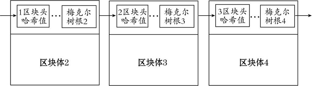 接下来,我们以比特币区块链为例,详细阐述区块链的技术原理。一个完整的区块由区块头(Head)和区块体(Body)构成。如图3.1所示,一个区块用一个正方形表示,上方为区块头部分,下方为区块体部分。区块头主要包括前一区块哈希值(Previous Hash)、版本号(Version)、时间戳(Time Stamp)、随机数(Nonce)、难度(Difficulty)和梅克尔树根(Merkle Root)六个要素。区块体中则是通过梅克尔树形结构记录了该区块储存的交易数量(Number of Transactions)以及交易数据(Transactions)。本区块的哈希值由区块头要素进行哈希计算得到,并记录在下一区块的区块头中,从而构成一个可以持续增长的链状结构,也就是区块链,如图3.2所示。