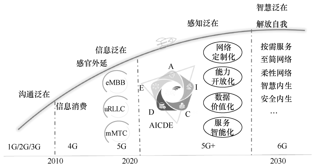 随着5G的大规模商业应用,移动通信行业开始将注意力转向下一代的移动通信系统,也就是第六代移动通信系统(6G)。6G的发展愿景是“数字孪生、智慧泛在”,推动整个社会全面走向数字孪生,通过数字世界与物理世界之间的映射和互动,实现预测未来和改变未来,同时通过无处不在的智慧,全面赋能整个社会的智能化升级,极大提升整个社会运行和治理的效率,提升人的生活、工作和生产的效率和质量,推动人类社会的发展进入新的阶段,进一步实现人类解放自我,促进人对自我价值的追求和实现。为适应“数字孪生、智慧泛在”的发展需求,服务更多的碎片化和差异化的全新应用场景,6G需要具备按需服务、至简网络、柔性网络、智慧内生、安全内生和数字孪生的特征,实现连接的无处不在,计算的无处不在,感知的无处不在,AI的无所不及,以及安全的无所不及。