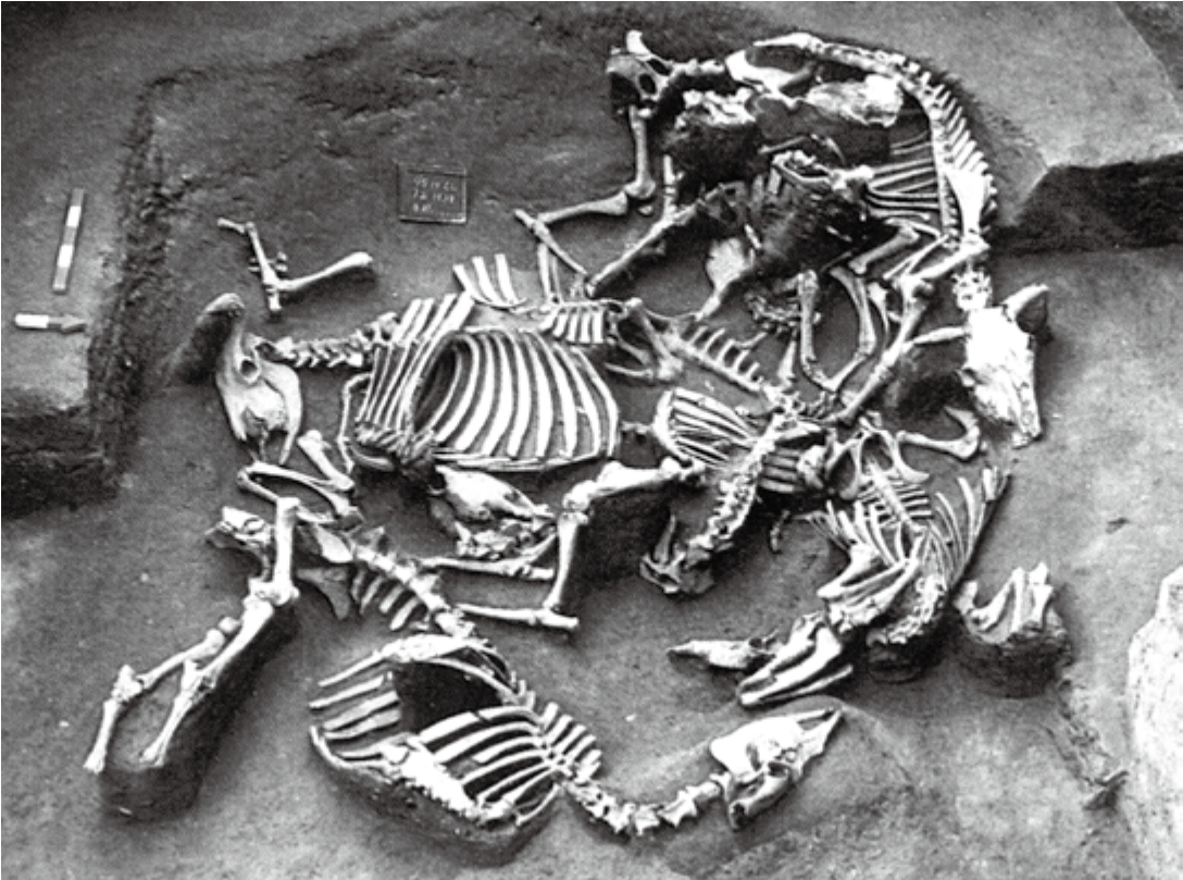 图2-9 河南柘城山台寺遗址祭祀坑里的9副黄牛骨骼