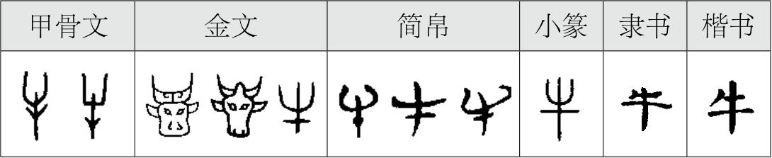 图2-11 “牛”字的演变