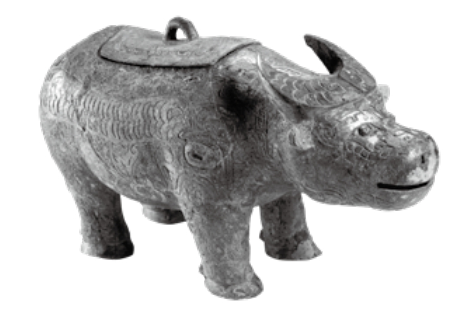 以牛为形象的文物,首推青铜器。我国的青铜时代始于公元前约1700年之前,历经夏商周三代发展到鼎盛,尤其是商周时期,青铜器常被贵族们用作宴享和宗庙祭祀祖先的礼器,非一般人可以拥有,成了权力和地位的象征。因而,这时期的礼器兼具极高的文化价值与艺术价值。