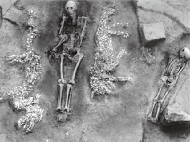 基于以上理由,我觉得把45号墓的主人视为氏族部落的首领,可能比较接近真实的历史。远古时候巫师和酋长往往是二者合一的,巫师凭借与上天、神灵或祖先沟通的独到本事,成为号令氏族部落成员的首领;反之,首领之所以能够服人,就是因为自身具有与上天、神灵或祖先沟通的能力。因此,墓主生前得到大家的尊重,死后的葬式也与众不同。试想,要把小小的蚌壳一枚一枚摆出两个1米多长的龙虎形状,绝不是举手之劳、易如反掌,这些龙虎图案是经过精心设计的,摆放的过程很可能也是在充满虔诚的气氛中完成的。当时的人在埋葬墓主人时,也应该是赋予龙、虎这两种动物以特殊含义,这可能是一种原始宗教的体现,反映出远古先民的思想。