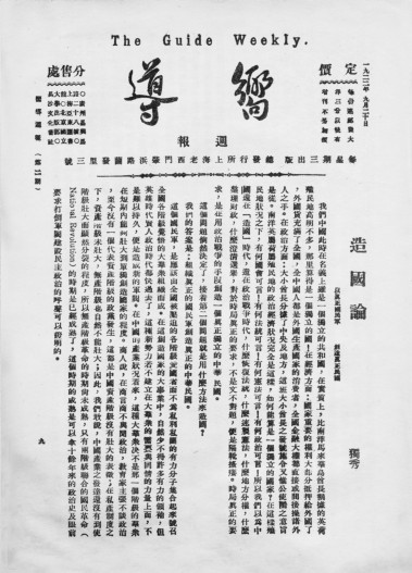 1922年9月13日,《向导》周报在上海创刊,16开4版,陈独秀题写刊名,蔡和森撰写发刊词,明确提出中国共产党的奋斗目标是“反抗国际帝国主义”“推倒军阀”,建立“统一、和平、自由、独立”的中国。该报受陈独秀直接领导,首任主编蔡和森,彭述之、瞿秋白也先后担任过主编。到1927年7月18日停办时,该报共出201期,是大革命时期影响最大的一份报刊。《新青年》载文称其“中国革命理论和策略的向导!全国最急进的刊物!已有四年的生命!销数达五万份!”由于该报立场鲜明,文字生动,又注重发行,销量很大,广受读者欢迎,又被誉为“黑暗的中国社会的一盏明灯”、四万万苦难同胞思想上的“向导”。