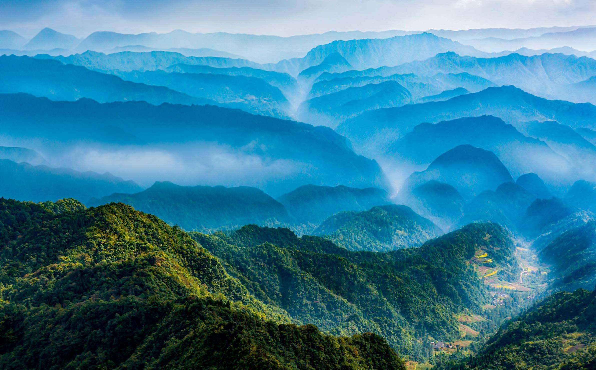 在平行岭谷的最西侧,华蓥山如同一支叶脉自东北向西南伸入重庆,在重庆西部分出巴岳山、云雾山、缙云山、中梁山等山脉。在重庆东北部,平行岭谷受到大巴山阻挡,逐步发生转向并与之拼合,形成封锁四川盆地东北部的一道枷锁——巫山。