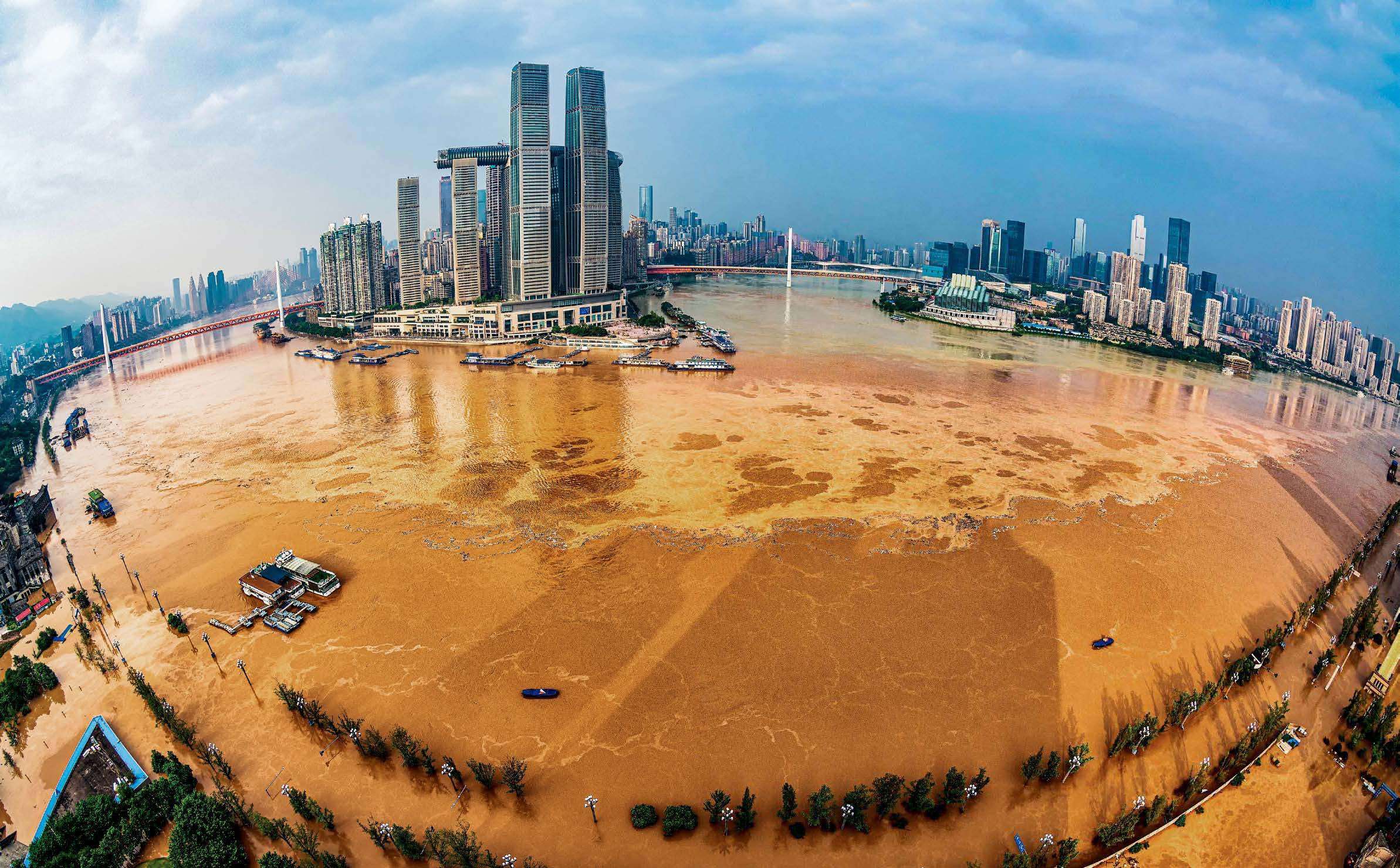 洪峰过境时的重庆中心城区,南滨路多个路段被洪水淹没/摄影 司琪