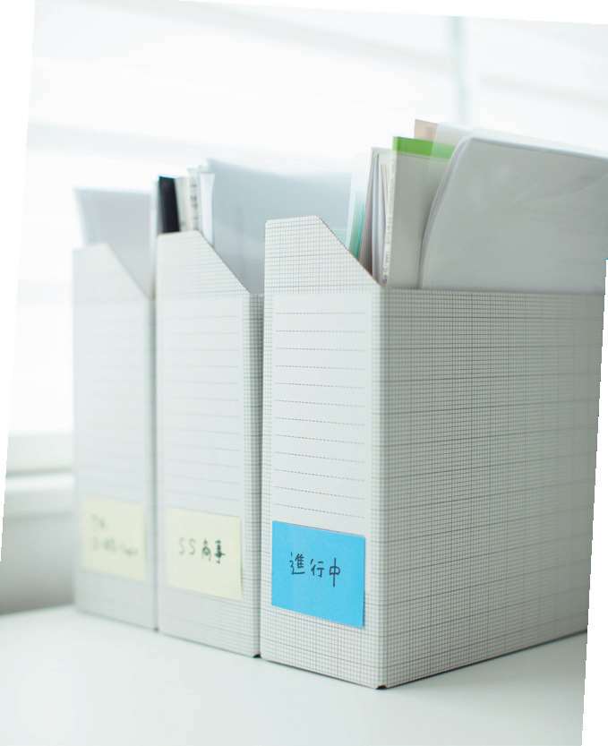 “待定项目的议案”与“周期很短的小项目”也会产生一些文件与笔记。千万别把它们堆在办公桌的角落,设置一个专用的文件盒吧。切记,文件盒的标签不要写“待定”,用更加积极乐观的“进行中”会更好。